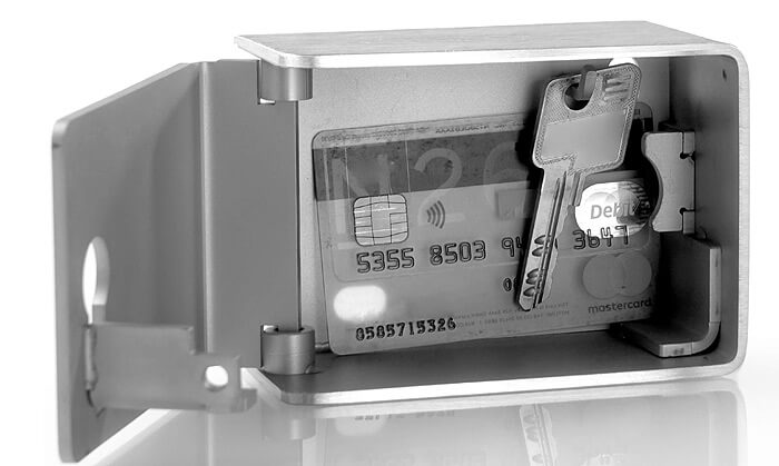 In addition to a key hook, the 222 ‘Credit Card’ surface-mounted safe also offers space for depositing a credit card, transponder or key card.